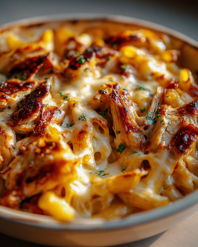 Yes, you can prepare this dish ahead of time! Simply assemble the BBQ Chicken Mac and Cheese up to the baking step, cover it tightly with plastic wrap, and refrigerate. When you’re ready to bake, remove the wrap and add a few extra minutes to the baking time. This makes it a great option for meal prep or when hosting gatherings!