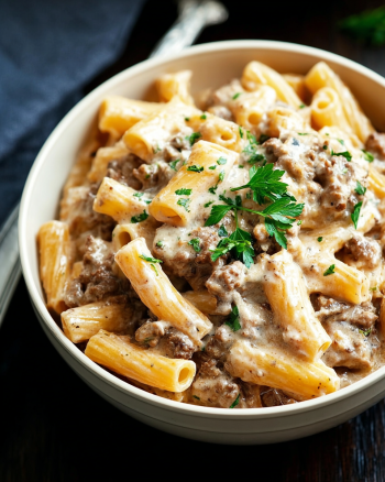This meal offers a good balance of macronutrients, making it a hearty option for dinner. The protein from the ground beef and cheese helps to keep you full, while the carbohydrates from the pasta provide energy. The fats contribute to the creamy texture and flavor, making each bite enjoyable.