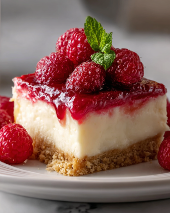 Imagine a smooth, velvety cheesecake resting on a buttery graham cracker crust, topped with vibrant raspberries. Each bite offers a perfect balance of sweetness and tang, making it an ideal dessert for any occasion. Whether you’re celebrating a birthday, hosting a dinner party, or simply treating yourself, this cheesecake is sure to be a hit!