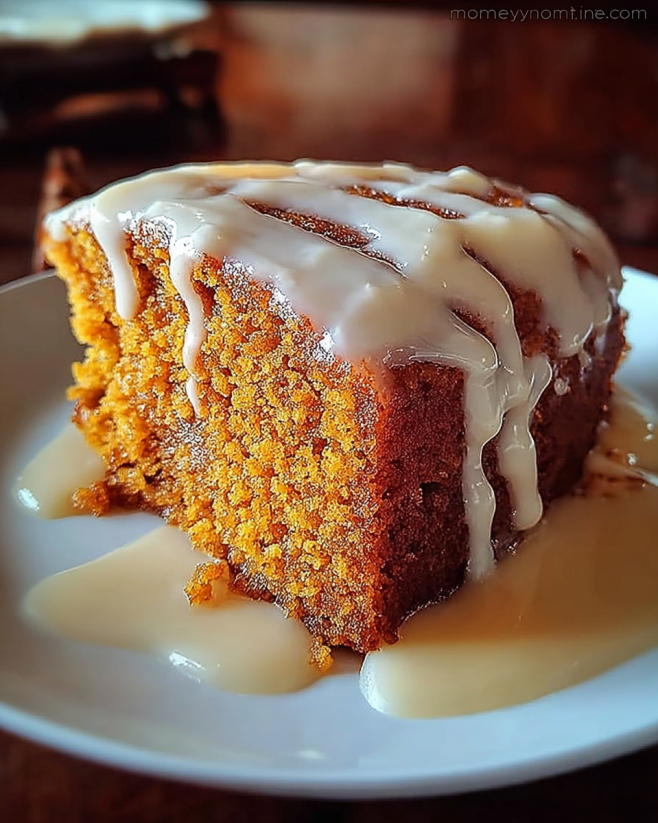Once the cake has cooled in the pan for about 15 minutes, it’s time to add the glaze. Drizzle it over the cooled cake, allowing it to soak in a bit. This sweet topping will enhance the flavors and make your Honey Bun Cake even more irresistible. Now, it’s ready to be served!